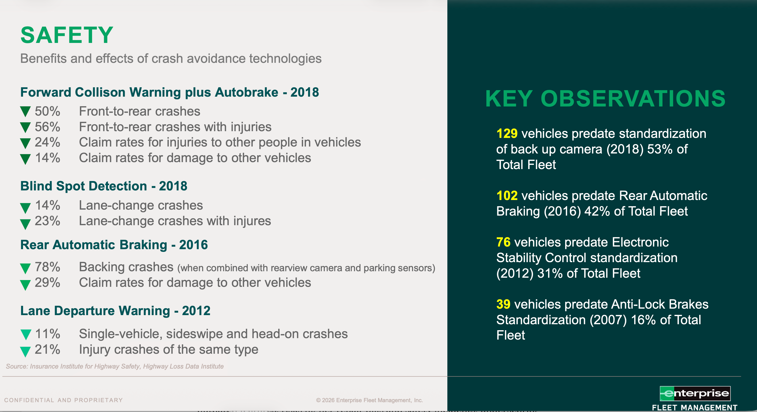 A critical aspect of the report focuses on safety deficiencies, revealing that a substantial portion of the fleet lacks modern crash avoidance technologies. Drawing on data from the Insurance Institute for Highway Safety (IIHS), the analysis notes benefits of newer model vehicles, such as a 78% reduction in backing crashes with rear automatic braking and a 50% drop in front-to-rear crashes with forward-collision warning systems.