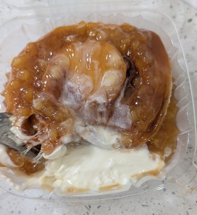 I asked the lady if it was cream cheese icing, and she said yes. However, it only had the sweet vanilla icing flavor. I don't think I'll get the apples next time.