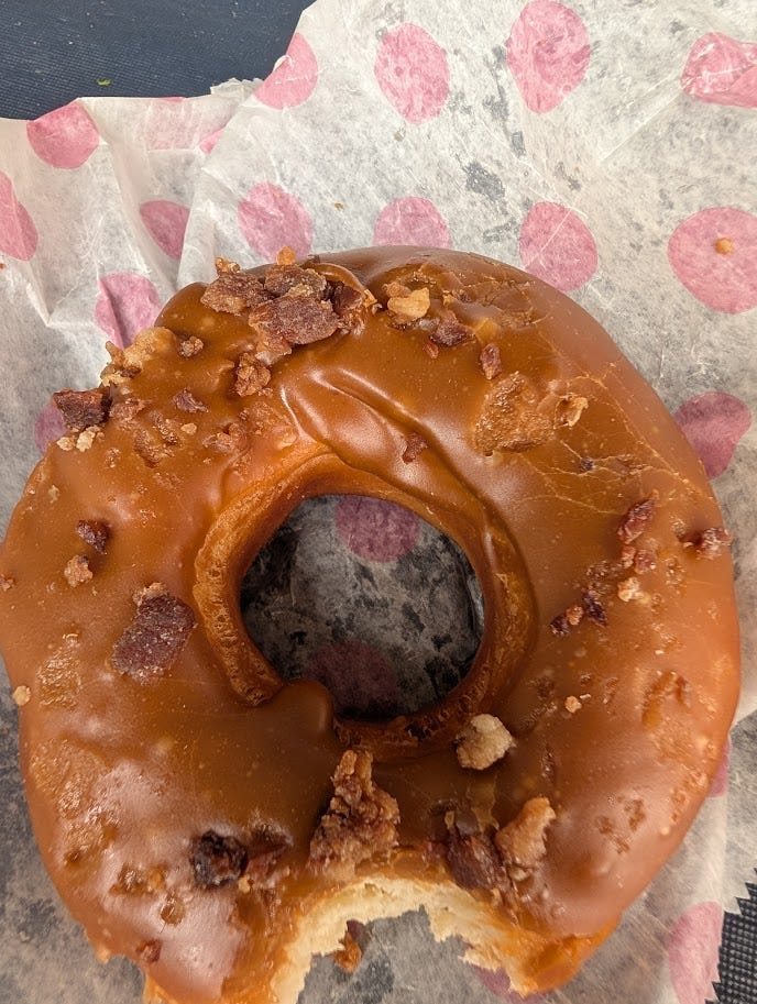 On a more disappointing note, I had one of the worst donuts of my life. As you recall from my previous reviews, I KNOW DONUTS! I was tricked by Fluffy’s bright colors and pretty-looking donuts on display. I tried the maple bacon. It was the heaviest, densest donut I have ever tasted. The icing was lacking in the main flavor - Maple!