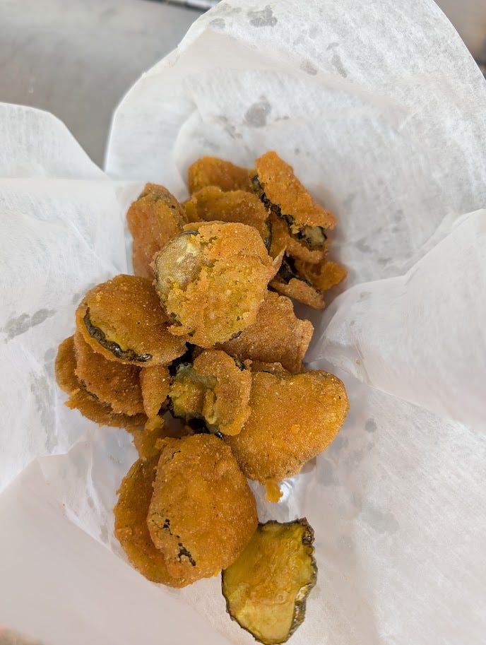 Next up came the Fried Pickles. This is a family favorite of ours anywhere we go. These were $10. We had a decent amount for the price. My only complaint was that there was no ranch served alongside these, nor any in a bottle to self-serve. The breading was a tad on the spicy side. Ranch would have made it even better. The pickles were perfectly sliced, not too thick.