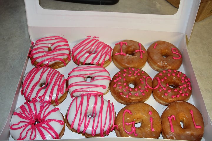 One last note, to liven up a plain treat into something even better for a party or function, you can have these decorated. Any grocery bakery will do this for you. I honestly forgot to ask if it costs extra. Here are 2 examples a friend made for me when we found out what we were having during both of my pregnancies.