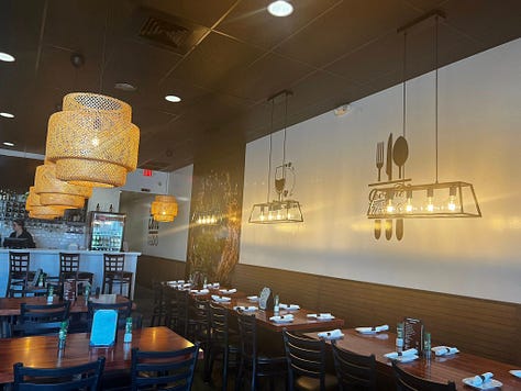 My husband and I have never had Peruvian food before. We eat at Panera next door often and decided to try it out one day. The atmosphere is quite nice.